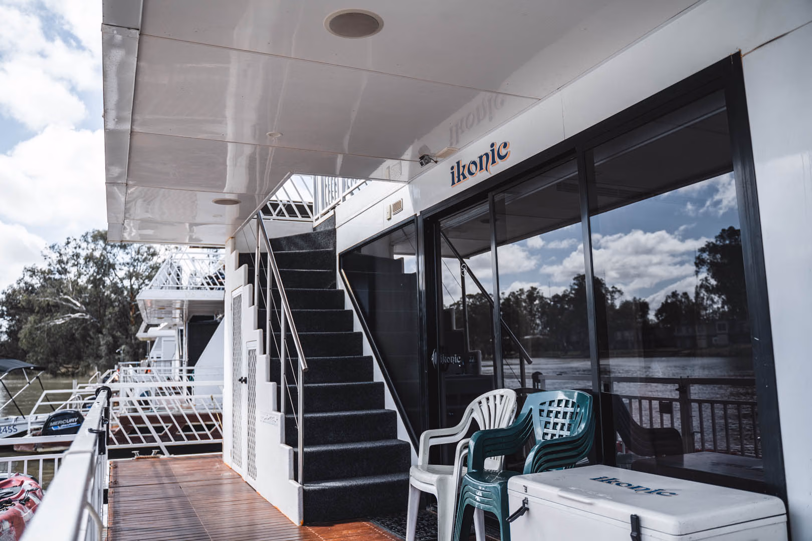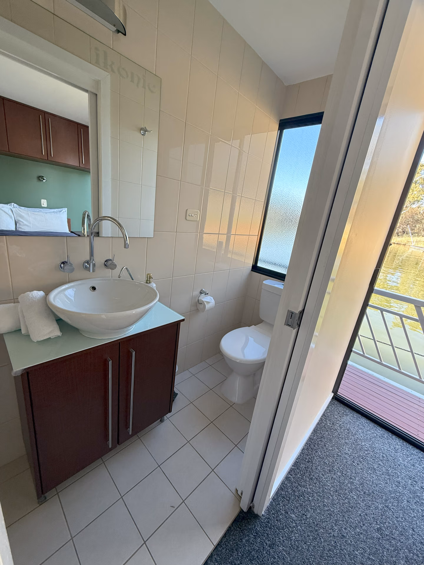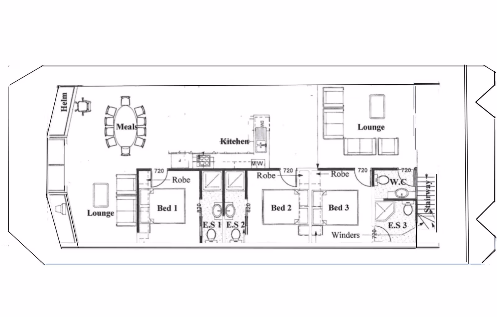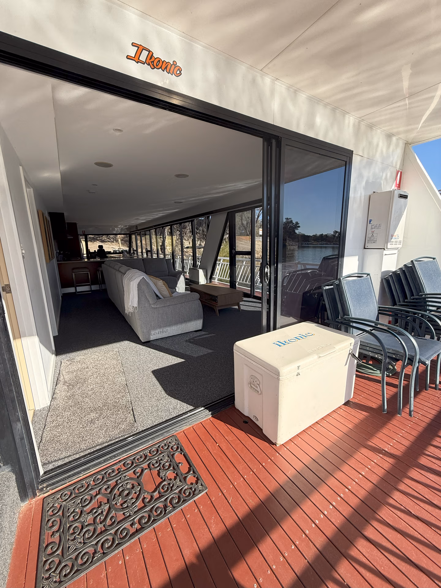 Bedroom 1, 2 and 3 Queen size bed clean bed linen, quilts and pillows provided – overhead cupboards for storage your own sliding-door access to the outdoors – plenty of unrestricted vision allowing you to lie in bed and soak up the scenery, personal towel each, ensuite bathroom. Ikonic is a 6-8 Berth boat.