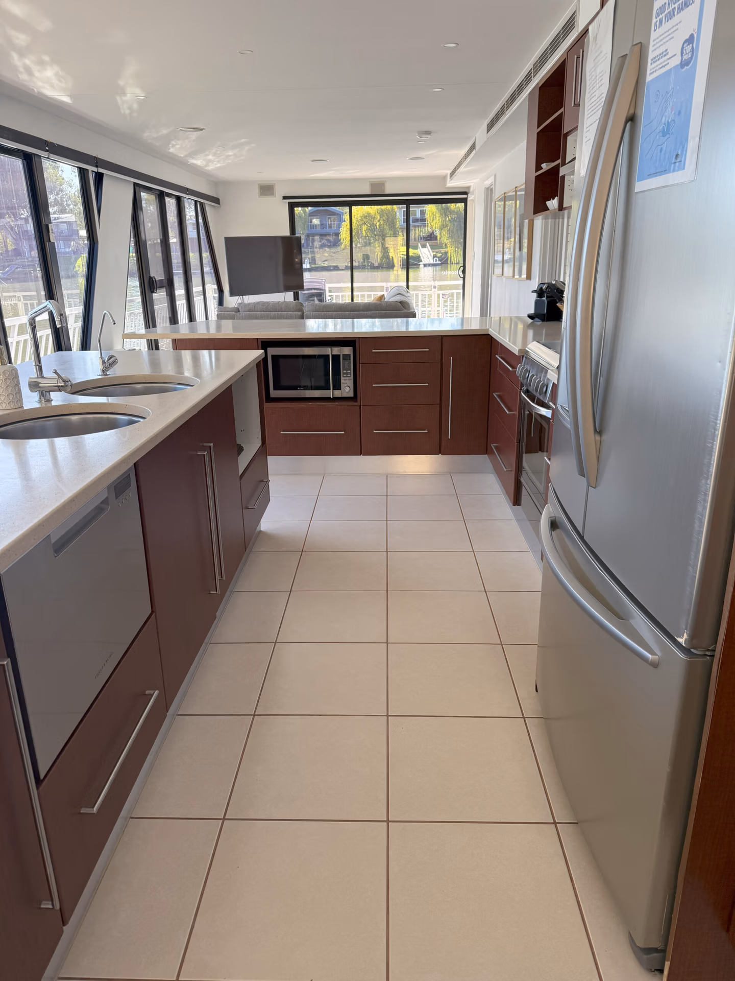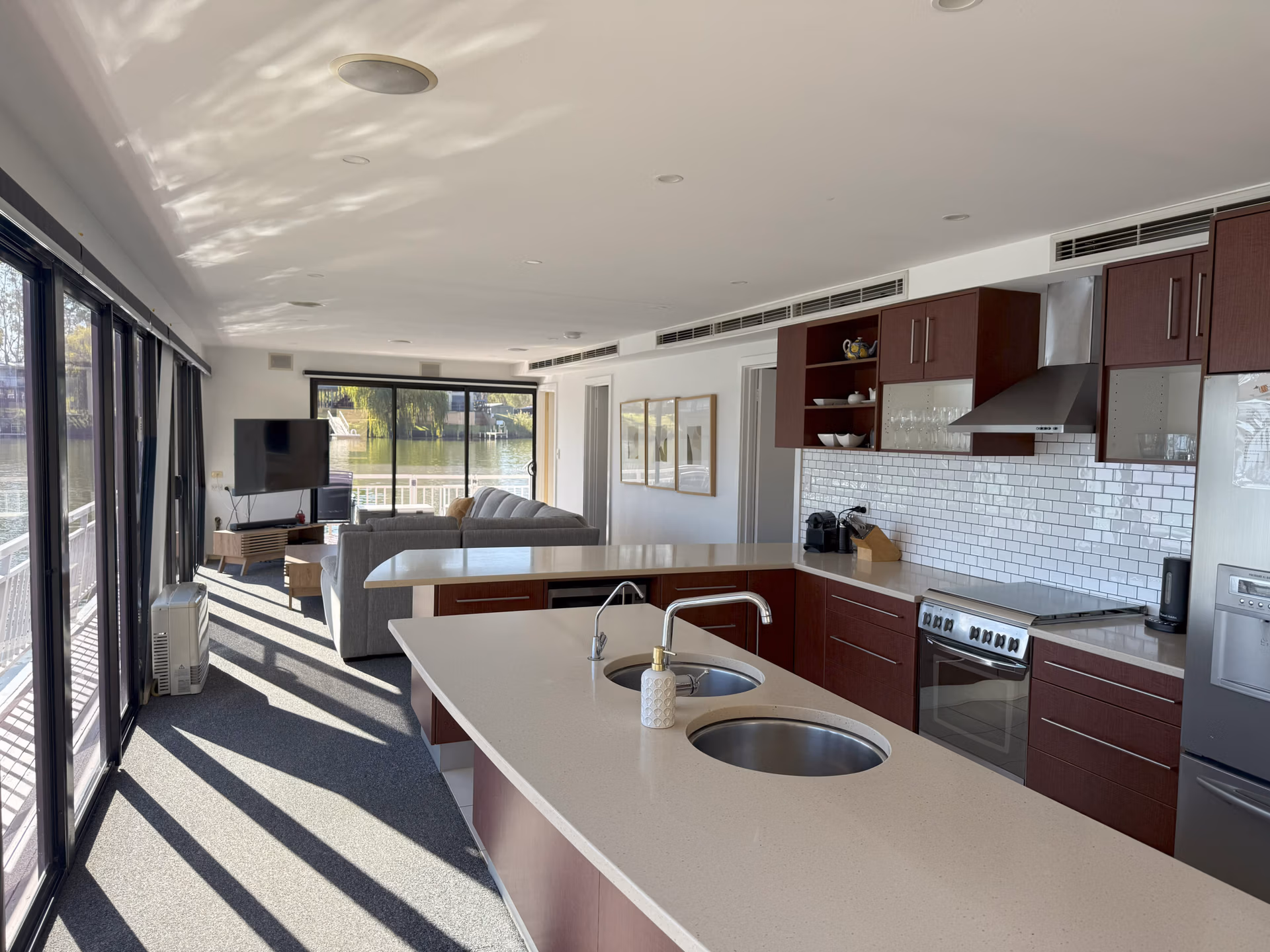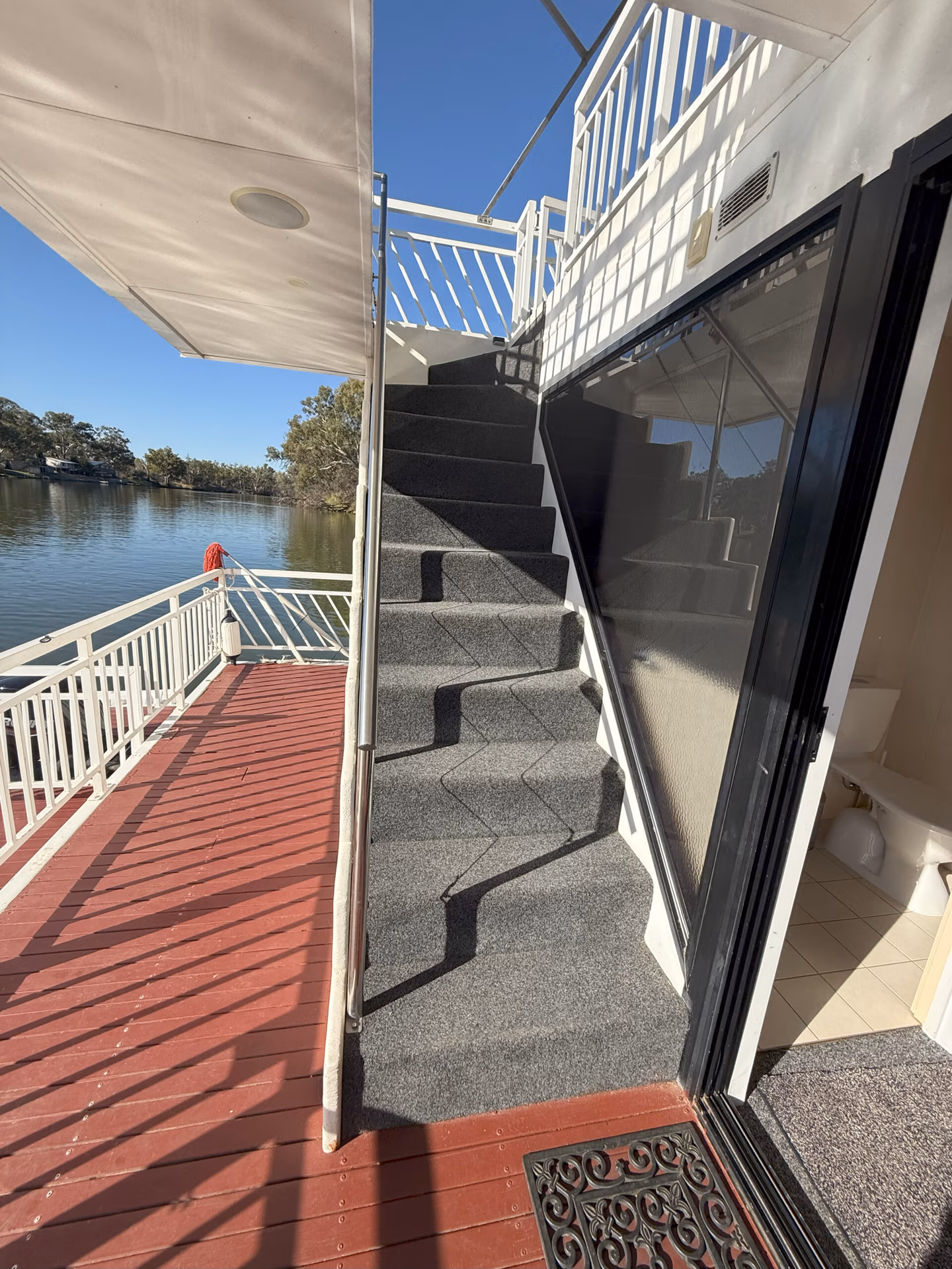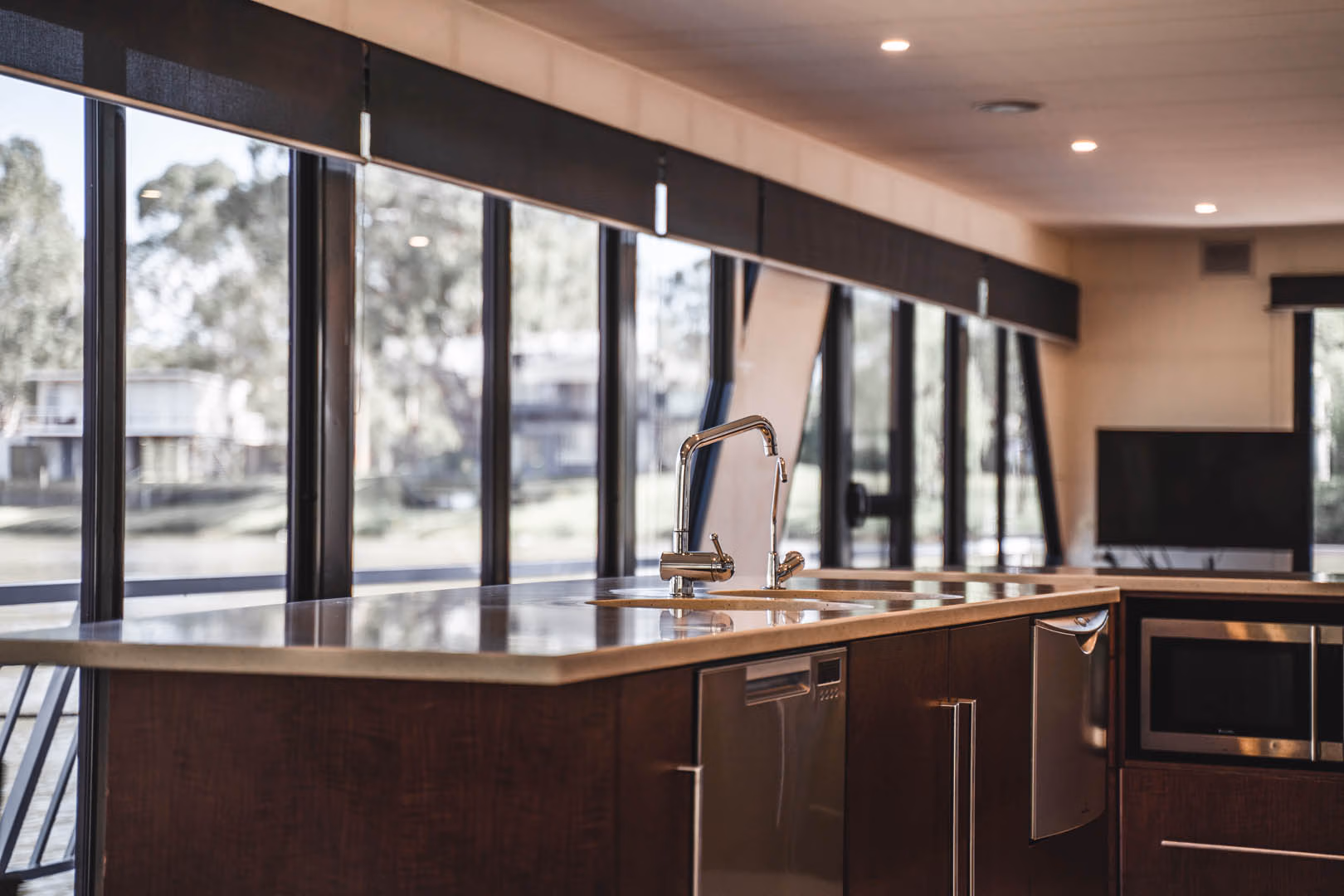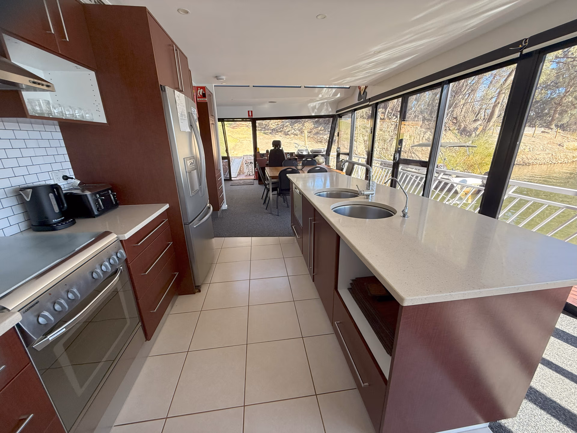 Bedroom 1, 2 and 3 Queen size bed clean bed linen, quilts and pillows provided – overhead cupboards for storage your own sliding-door access to the outdoors – plenty of unrestricted vision allowing you to lie in bed and soak up the scenery, personal towel each, ensuite bathroom. Ikonic is a 6-8 Berth boat.