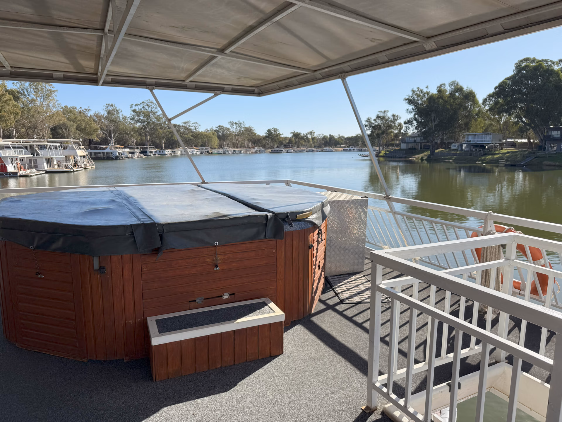 Ikonic is 8.5 meters wide and 20 meters long with a 1.8 metre swim deck. This boat is powered by 2 x 90hp Mercury 4 stroke outboards. Relax on the upper deck in a 6-8 person spa.